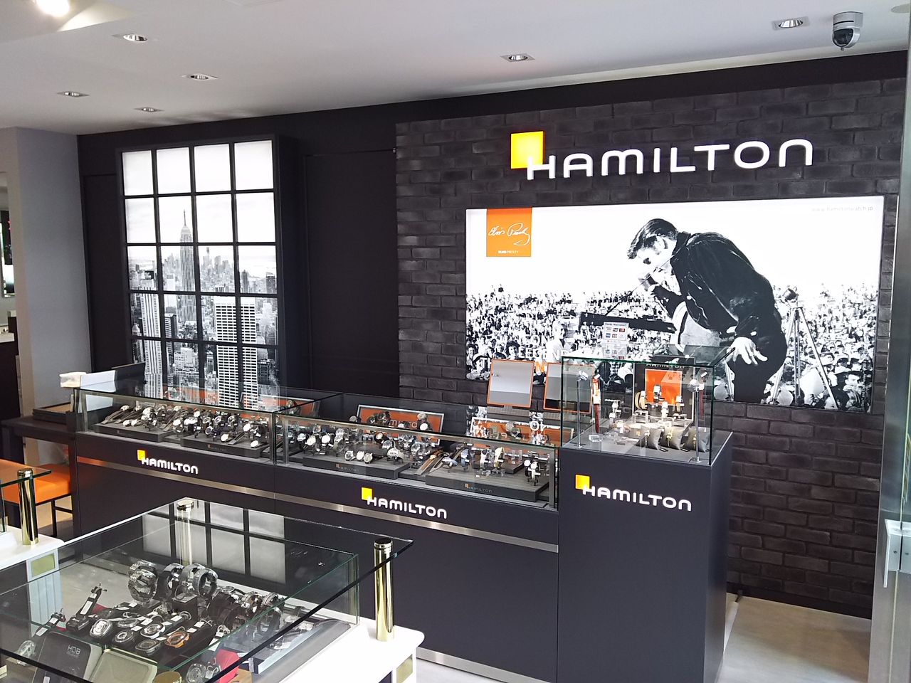そして当店の目玉ブランドがハミルトンですが、専用ブースが非常にかっこいいです!!