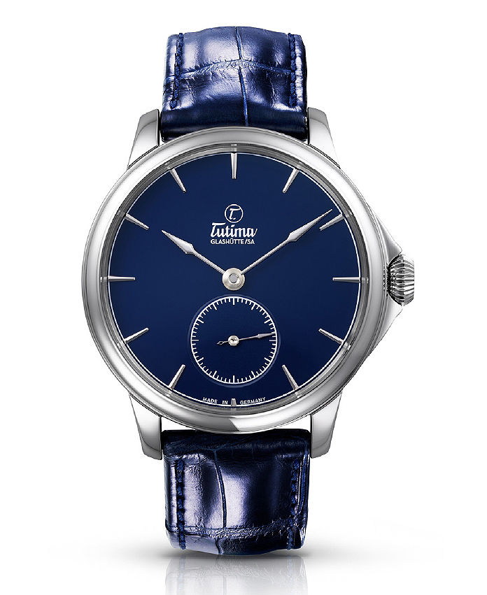 ドイツメーカー「チュチマ グラスヒュッテ」から、7月頃リリースされる「パトリア」のSSケース仕様で、ブルーエナメル文字盤が非常に綺麗なモデルです