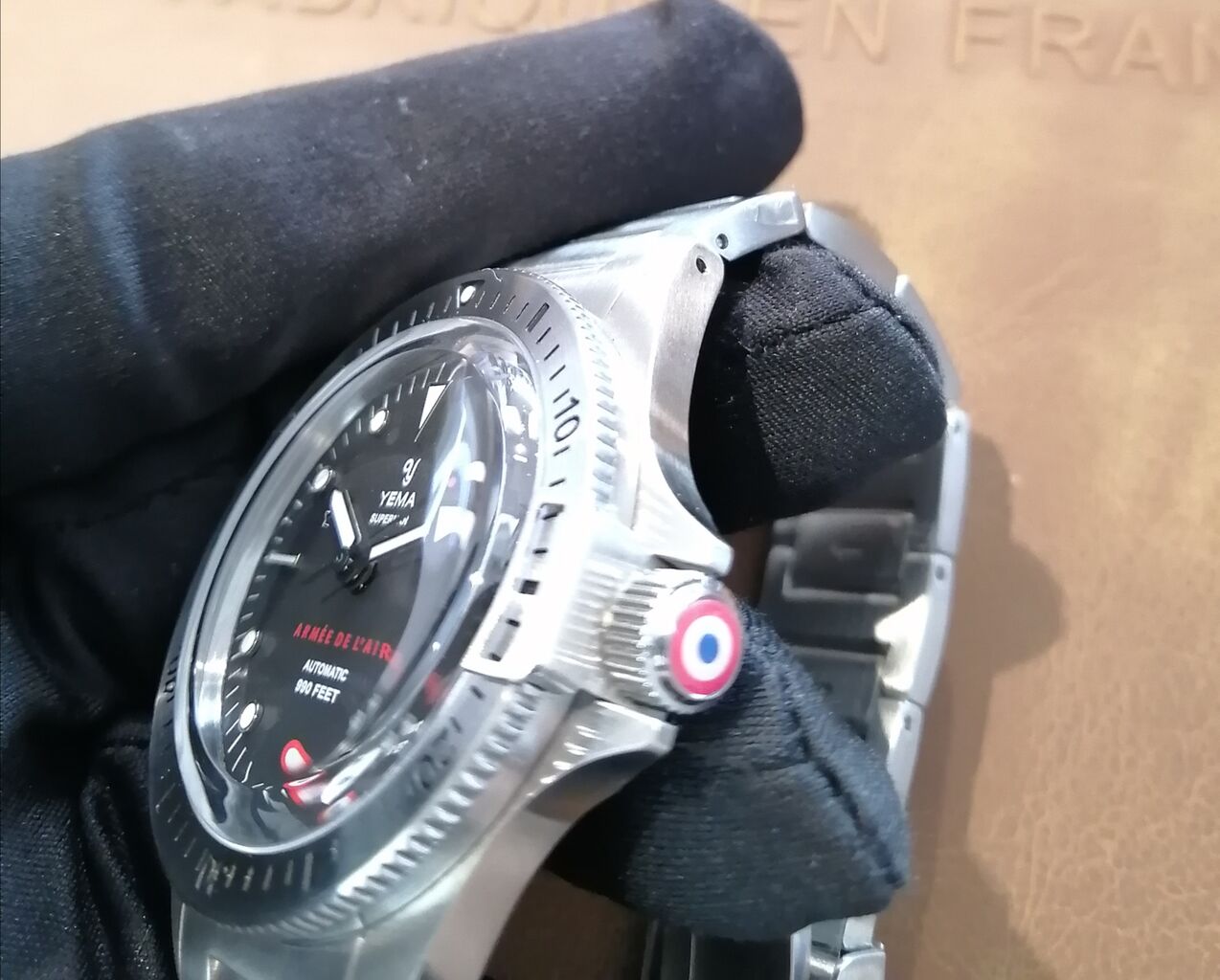 6時位置、リューズにはフランスの国家記章が入っておりリューズはサファイヤガラスでコーティングされています