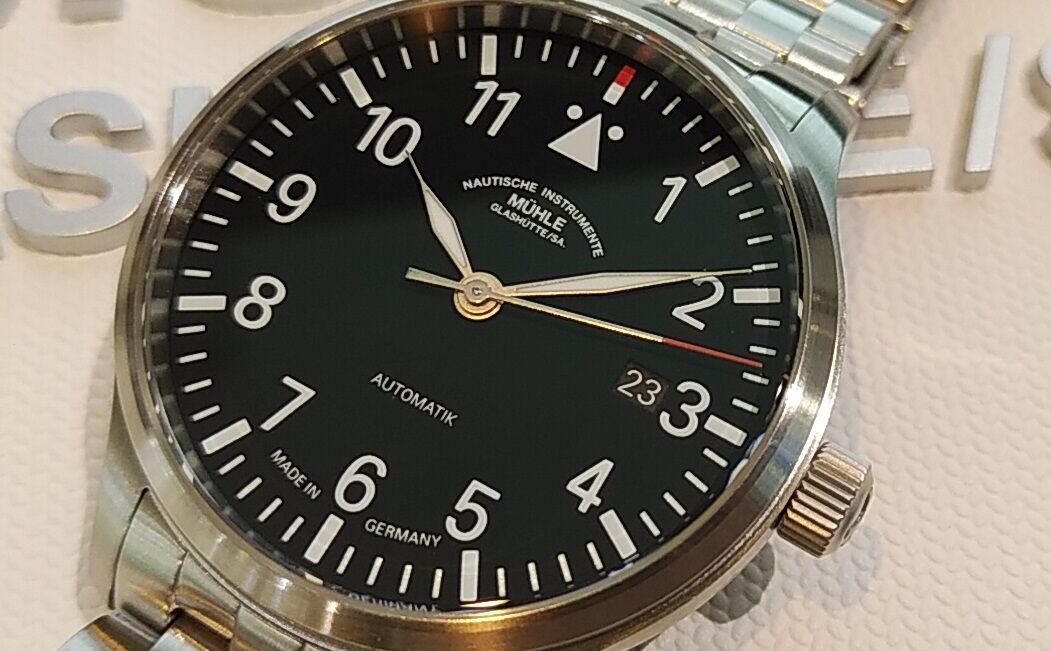 ドイツメーカー「ミューレ・グラスヒュッテ」より、使い勝手の良い定番のフリーガー(パイロット)ウォッチのご紹介です。