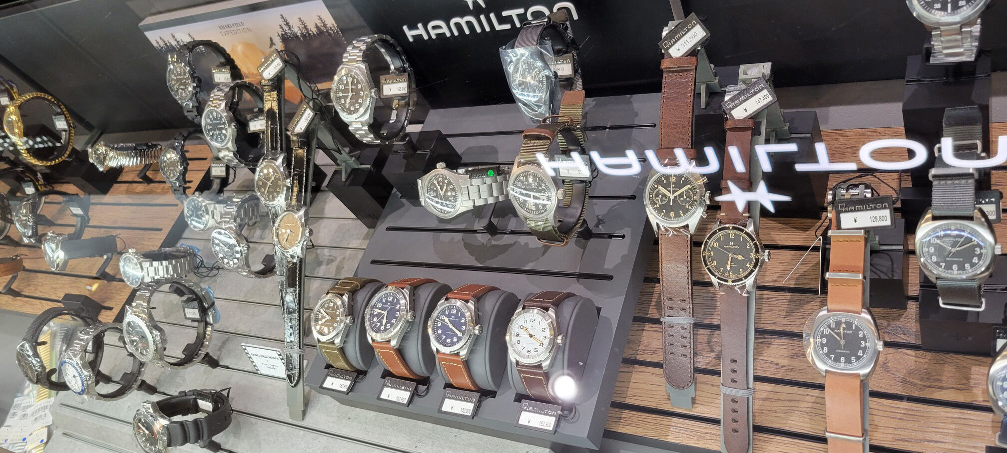 関西最大級のハミルトンプレミアムショップですので是非、ごゆっくりと腕時計をご覧ください。