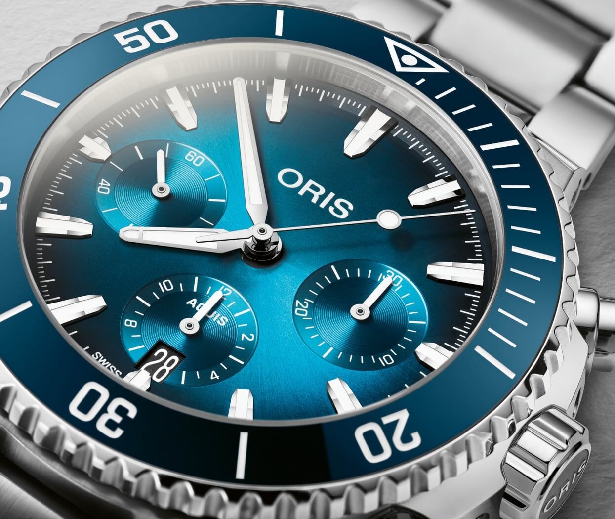 ガード付ねじ込み式リューズ、セラミックインサートの逆回転防止ベゼル、蓄光インデックス、300m防水を確保しながらも裏蓋がシースルークリスタルガラスであることなど、アクイスクロノグラフはモダンで汎用性の高い、全天候型であらゆるシーンに対応するオススメの機械式腕時計です。
